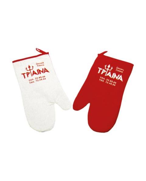 Λεπτομέρειες: Γάντια κουζίνας με επένδυση. Χρώματα κατά παραγγελία. Δυνατότητα κατασκευής μονόχρωμου ή δίχρωμου.