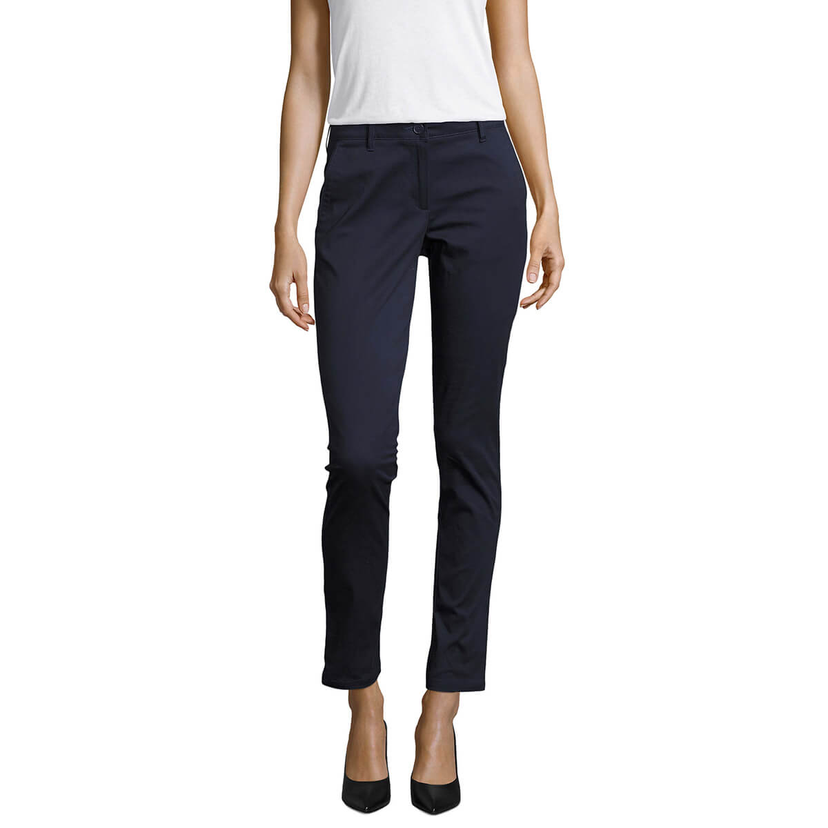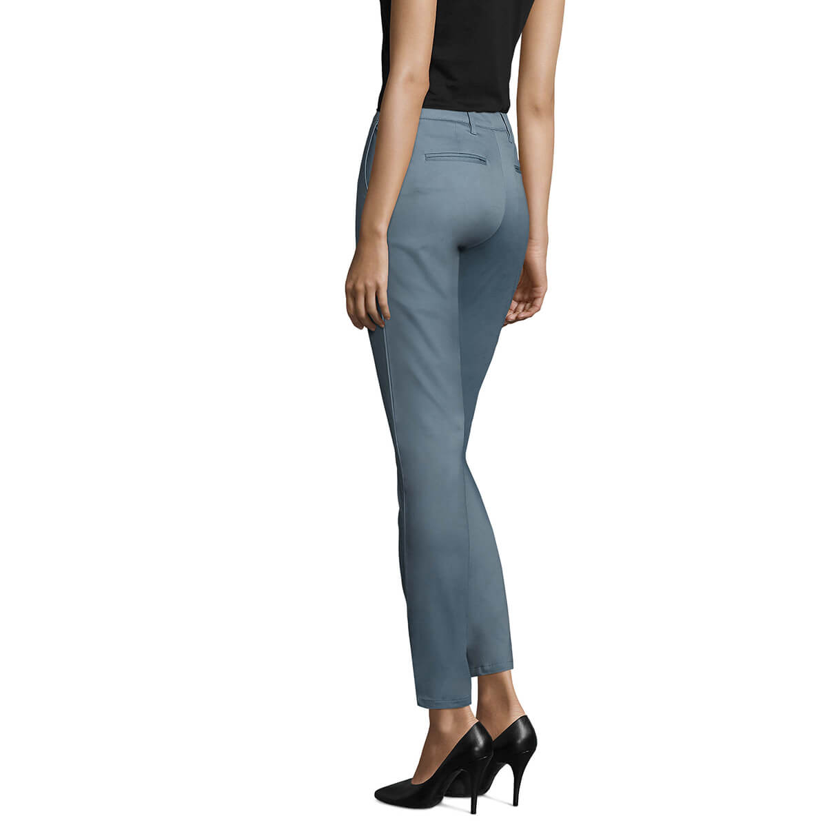 Λεπτομέρειες: Η κομψότητα του σατέν υφάσματος! Με μπροστινές ιταλικές τσέπες. Εφαρμοστή γραμμή. Δύο οπίσθιες κρυφές τσέπες και μια μικρή τσέπη «εισιτηρίου». Θηλύκια για τη ζώνη.