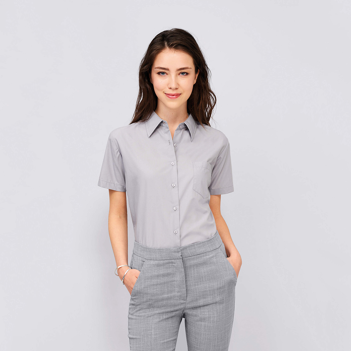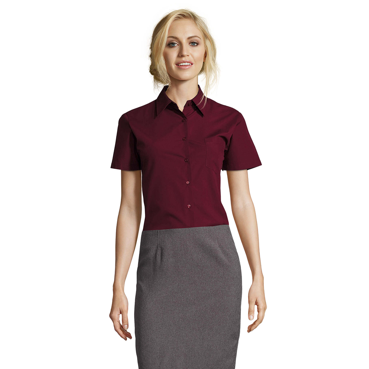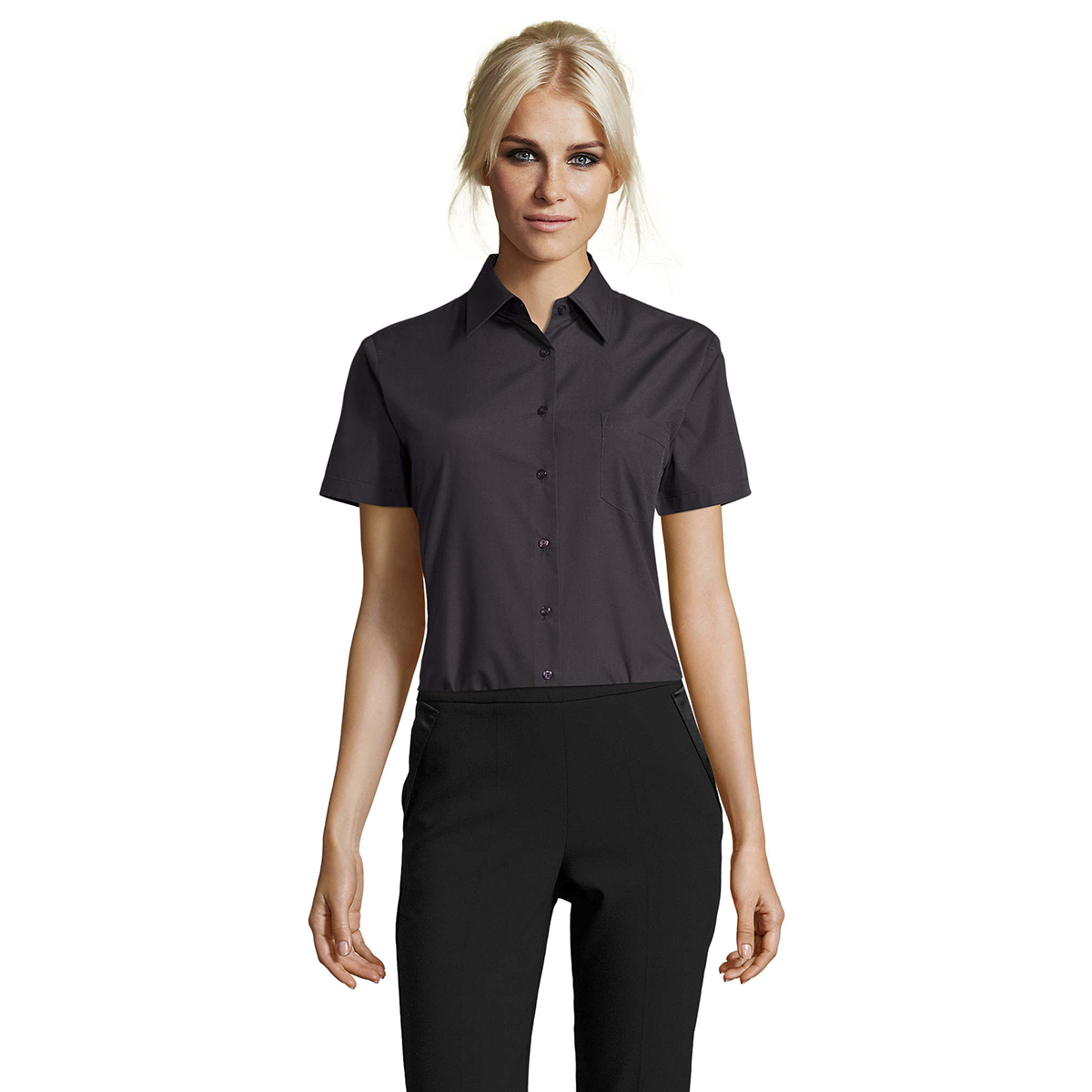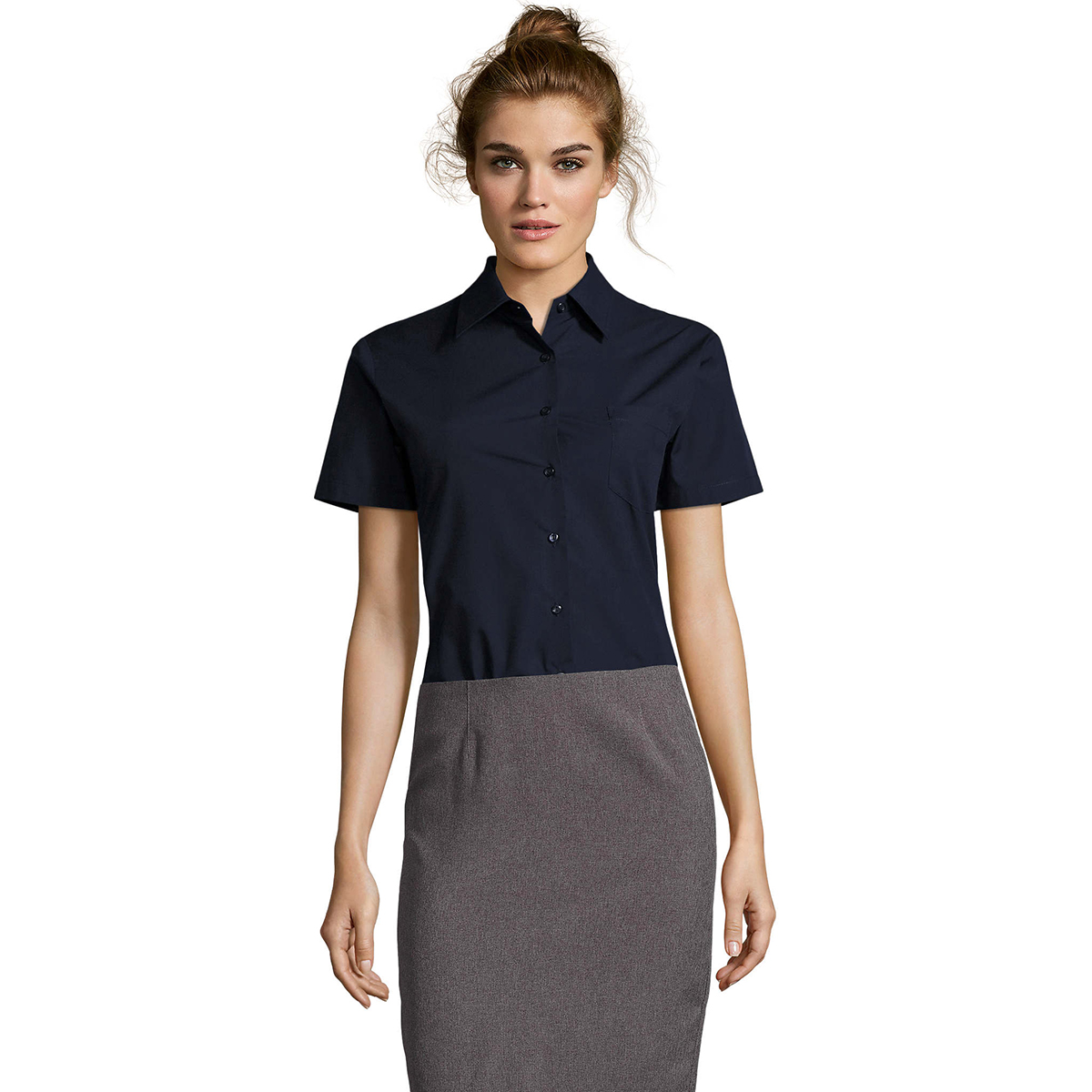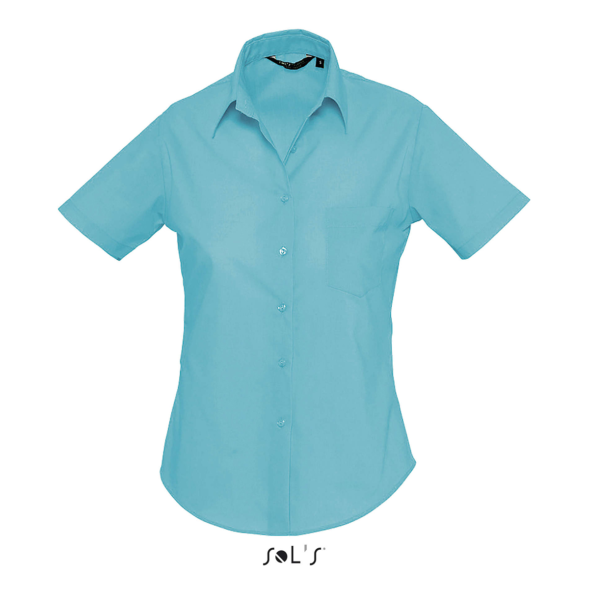 Λεπτομέρειες: Sol's γυναικείο κοντομάνικο πουκάμισο από ποπλίνα, με ενισχυμένο γιακά, τσέπη στο στήθος, πατιλέτα με επτά κουμπιά στο ίδιο χρώμα και βαμμένο ύφασμα.