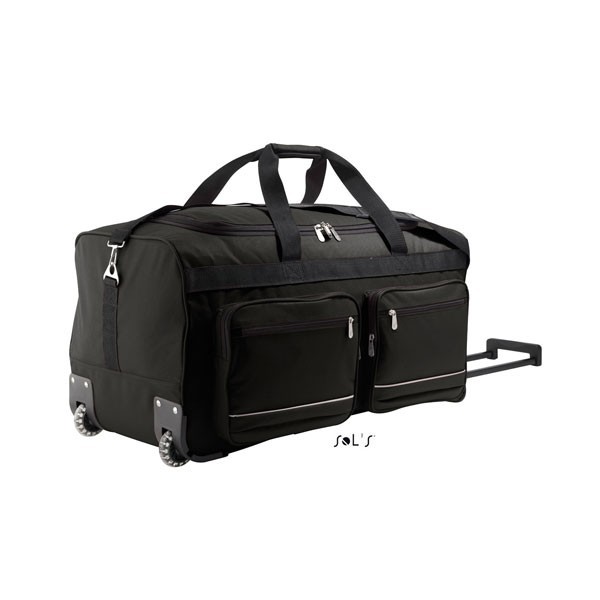 Λεπτομέρειες: Sol's σακ βουαγιάζ με πολύ μεγάλο κεντρικό χώρισμα, με φερμουάρ., μπροστινές τσέπες με φερμουάρ με διπλό χώρισμα, σκληρό πάτο μεγάλης αντοχής και πλήρως επενδυμένο, εξωτερικές μπάρες βιδωμένες στον πάτο του σακ βουαγιάζ, λαβές και χερούλι μεταφοράς από νάυλον για άνετο κράτημα, ρυθμιζόμενο και αποσπώμενο νάϋλον ιμάντα ανάρτησης, κρυμμένη λαβή μεταφοράς τρόλεϋ και "Αθόρυβα" ροδάκια.
