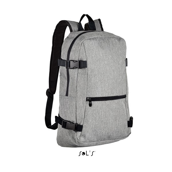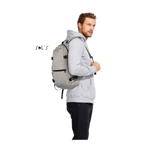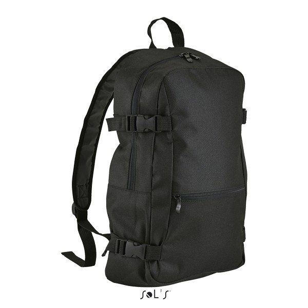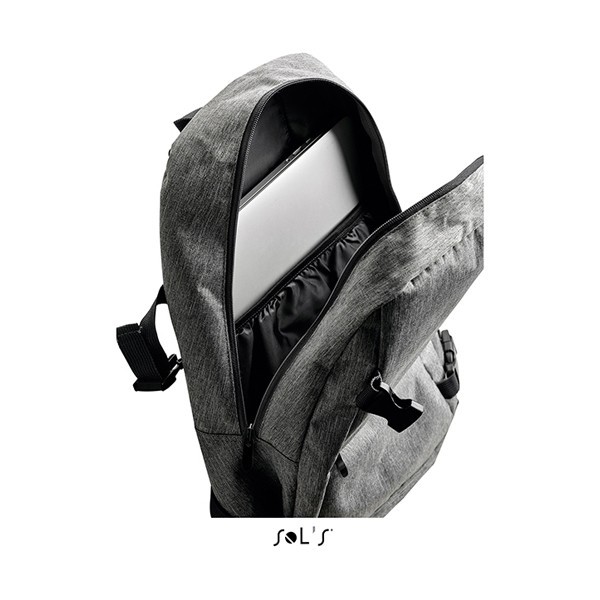Λεπτομέρειες: Sol's σακίδιο πλάτης το οποίο έχει μπροστινή τσέπη με φερμουάρ, με ειδικό χώρο για laptop, επενδεδυμένους, ενισχυμένους και ρυθμιζόμενους ιμάντες ώμου, επενδεδυμένη πλάτη, ιμάντες συμπίεσης με κλιπ που μειώνουν τον όγκο, χερούλι μεταφοράς από nylon και χωρητικότητα 13 λίτρα.
